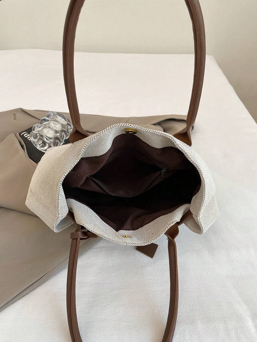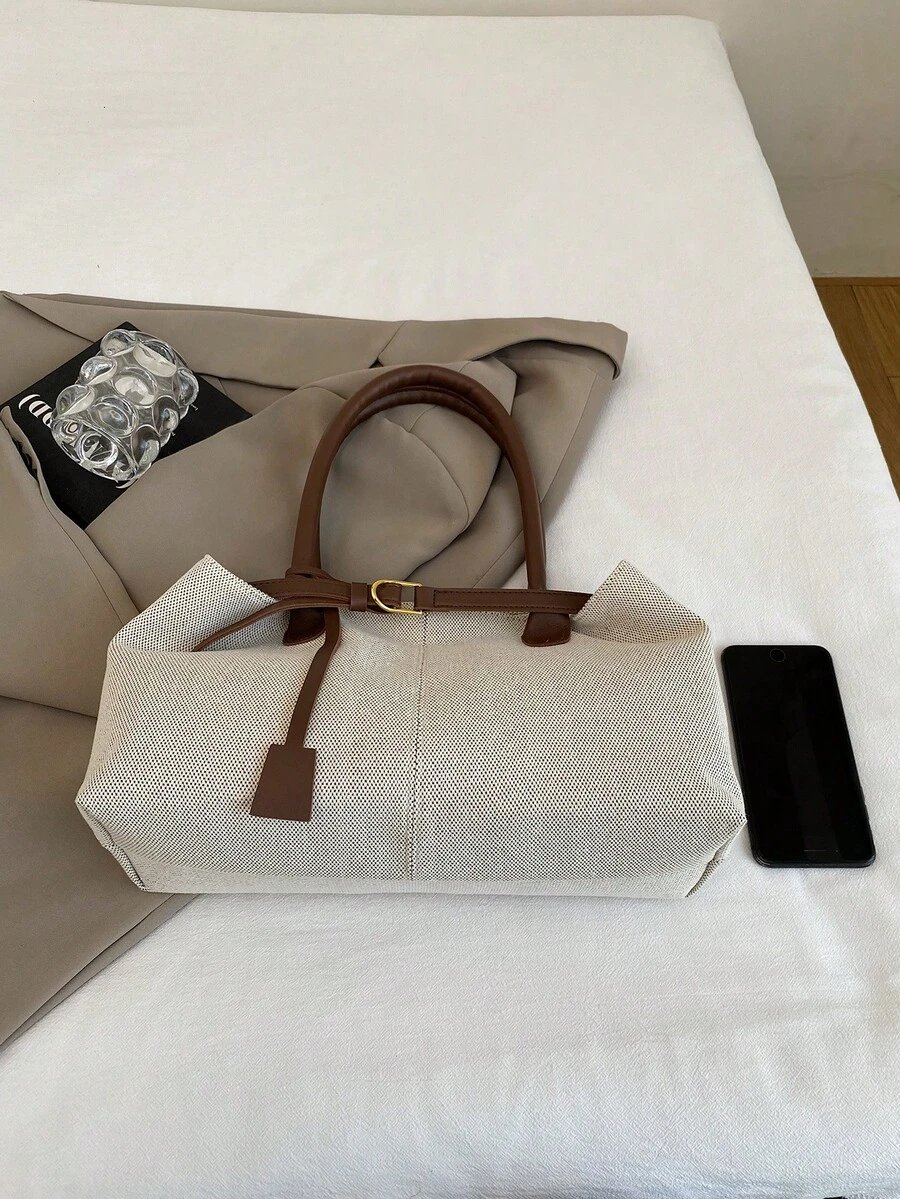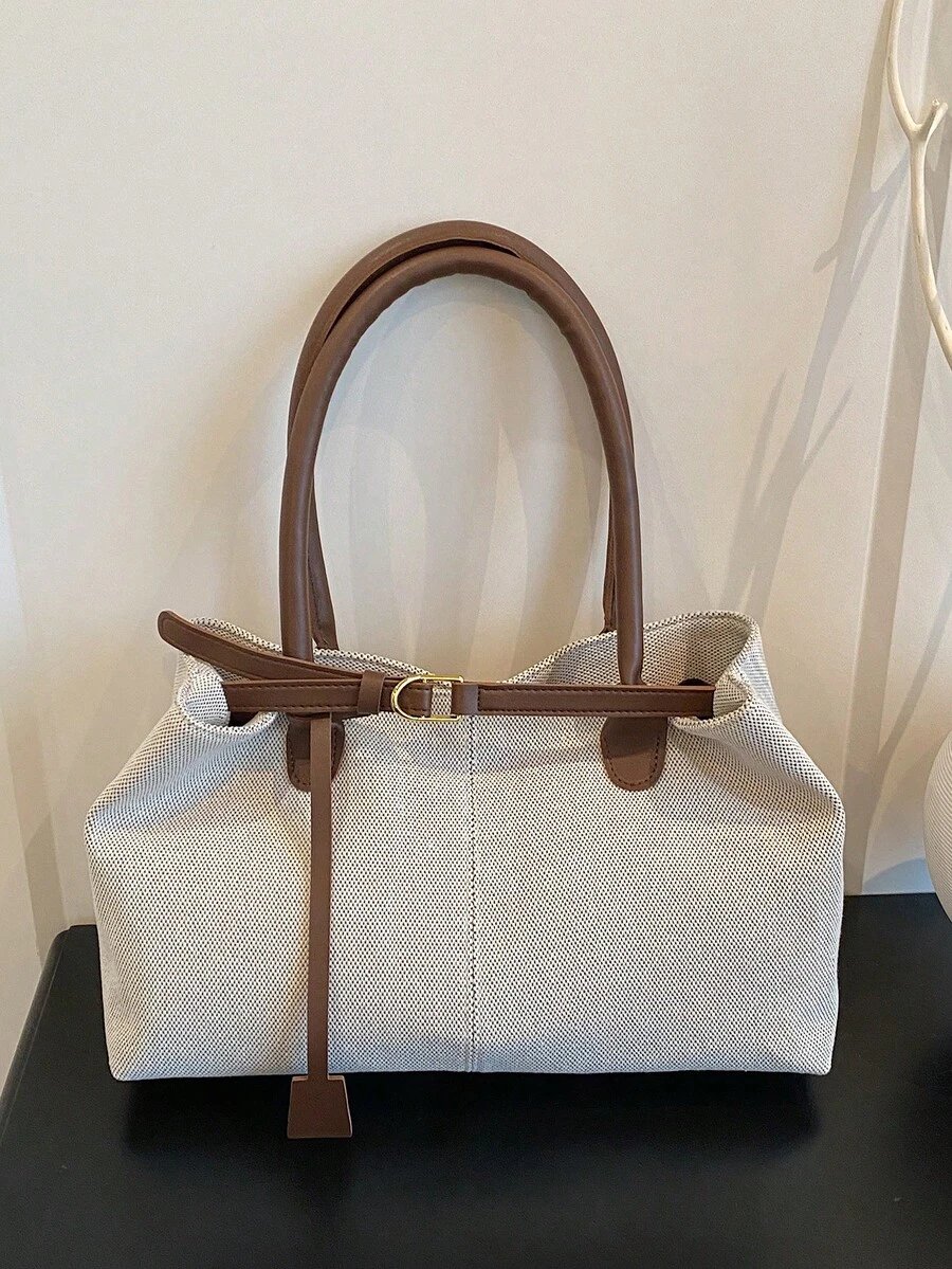 - اسم المنتج: حقيبة كبيرة السعة مزينة بحزام بني