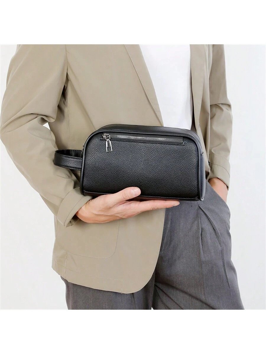 اكتشف راحة الأناقة مع حقيبة اليد الرجالية الصغيرة بسوستة معدنية، واستمتع بمظهر يجذب الأنظار!