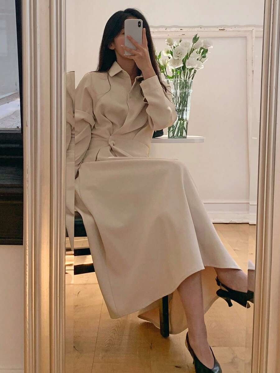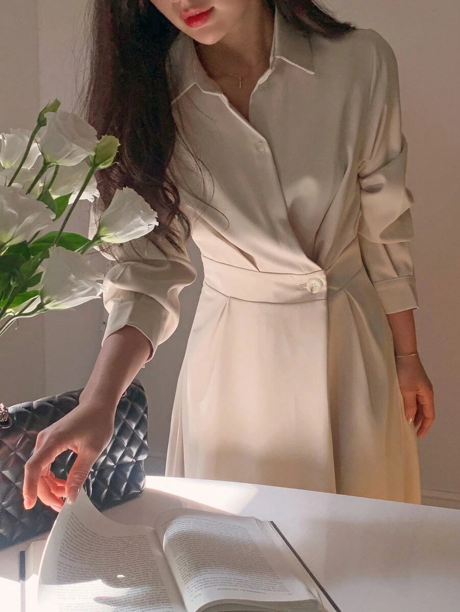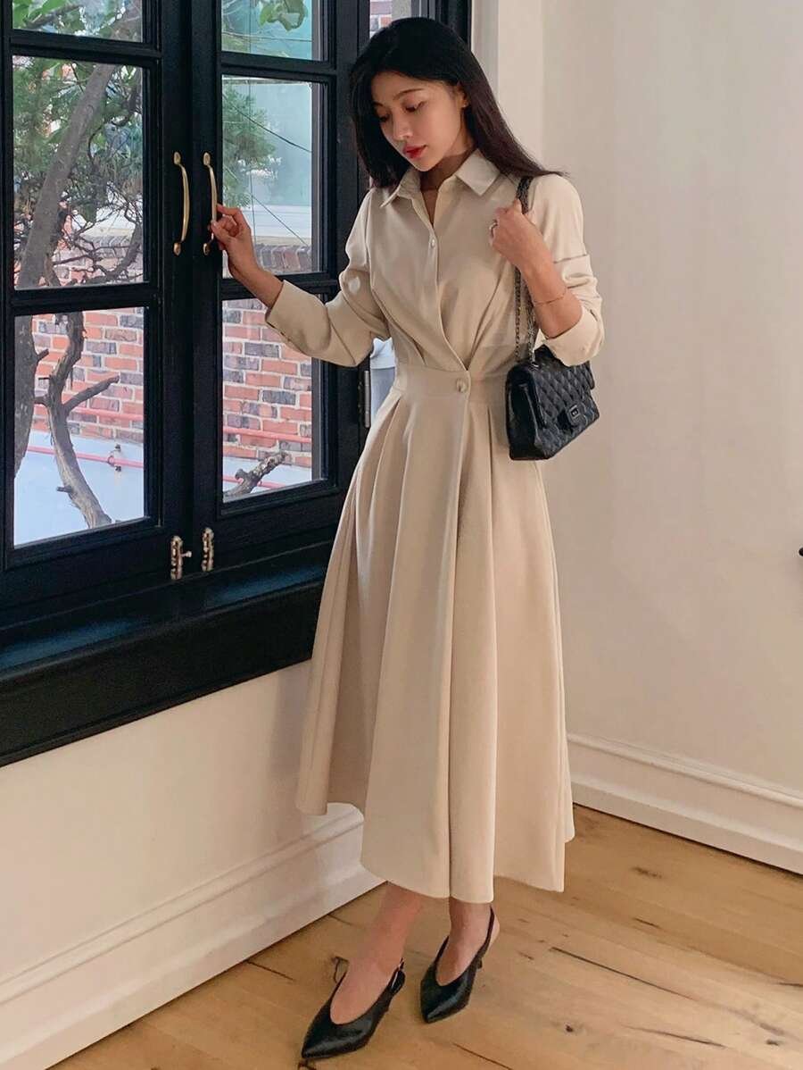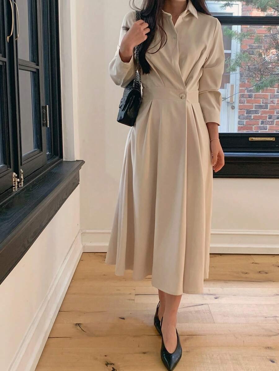 - اسم المنتج: فستان نسائي بياقة منقلبة