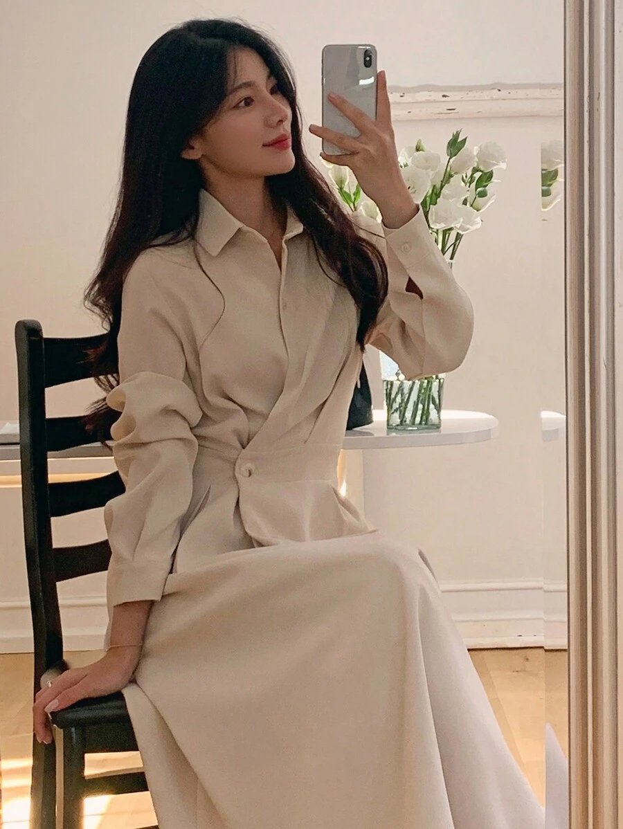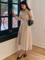 استمتعى بأناقة لا مثيل لها مع الفستان النسائي بياقة منقلبة مطوية وأكمام طويلة ماكسى، المصمم ليعكس جمالك وأناقتك في كل مناسبة. إنه الخيار المثالي للمرأة العصرية التي تبحث عن الراحة والتميز.