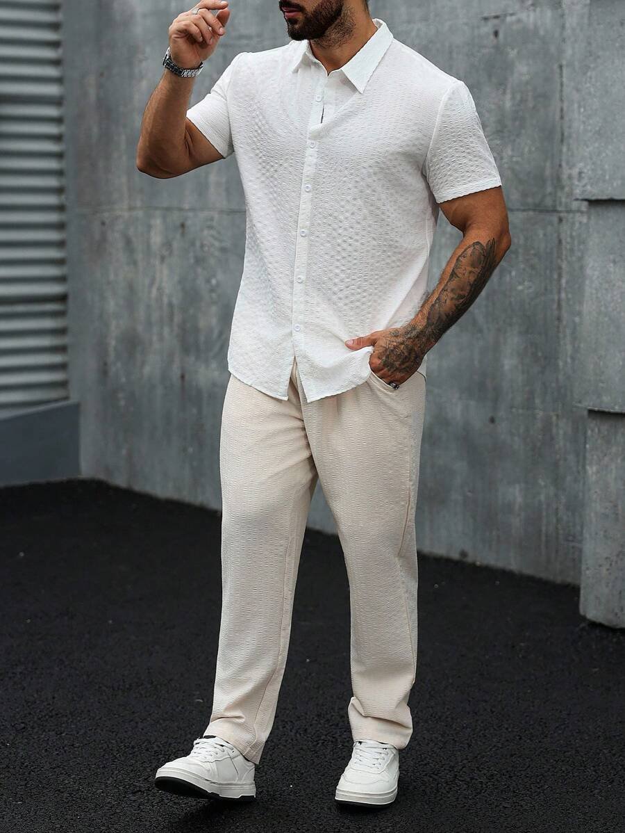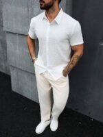 - تصميم عصري: قميص نصف كم وبنطال يجمع بين البساطة والأناقة، ليمنحك مظهراً جميلاً في كل مناسبة.