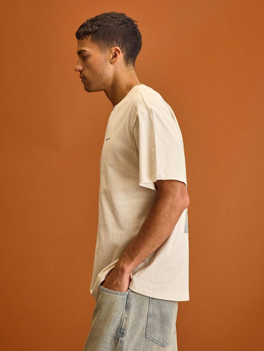 استمتع بإضفاء لمسة من التميز على خزانة ملابسك مع تيشيرت مطبوع رجالي نصف كم فضفاض!
