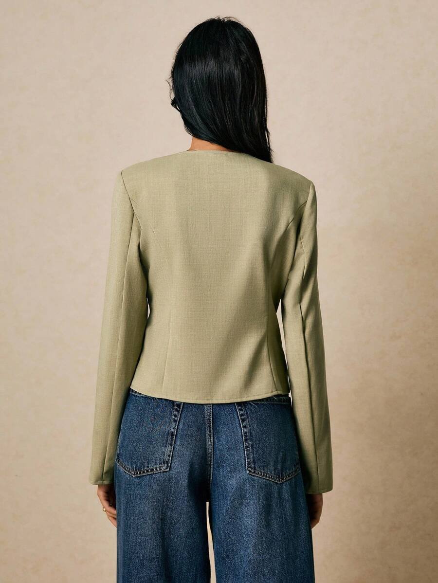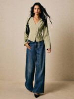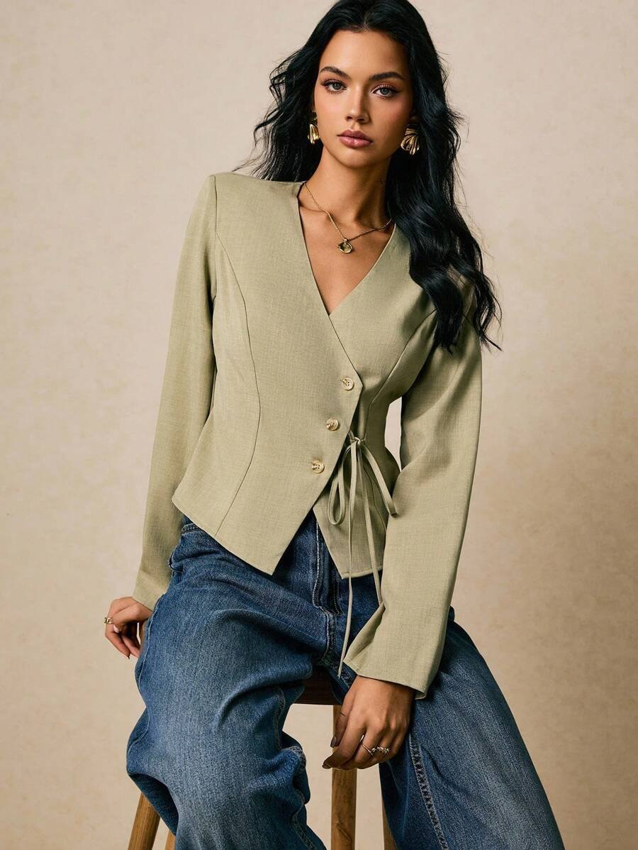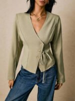 - تصميم عصري: بياقة مائلة V تضفي لمسة من الأناقة.